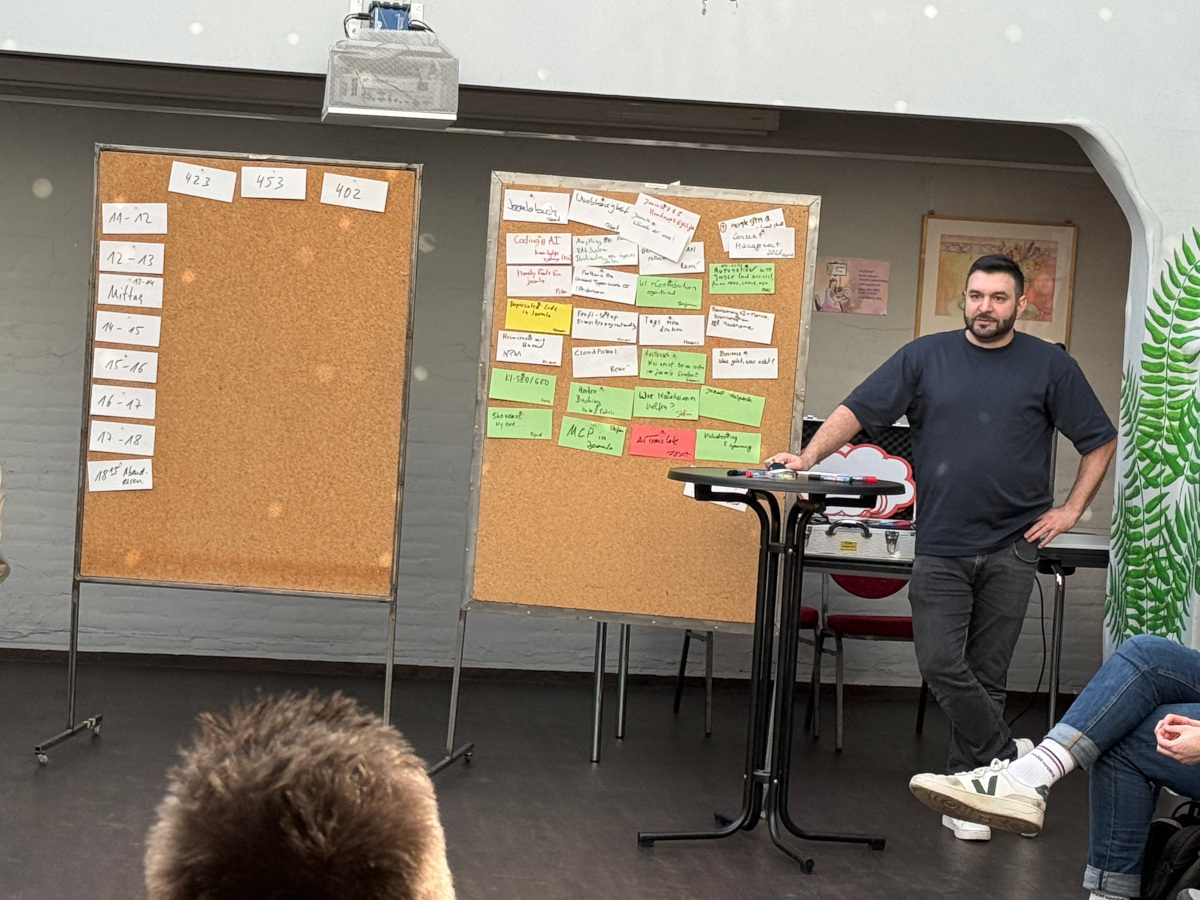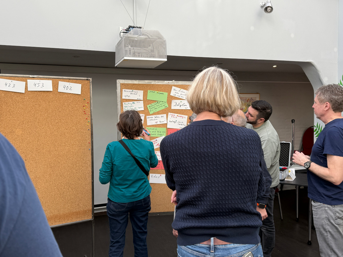 The event lasts two days. Each day starts with an introduction round so we all get to know each other. After that, it’s Post-It time. Some participants have one or more presentations ready, most participants don’t. Everyone who wants to present, talk about a specific topic or learn something new, pitches it, writes it on a Post-It and sticks that to a board.