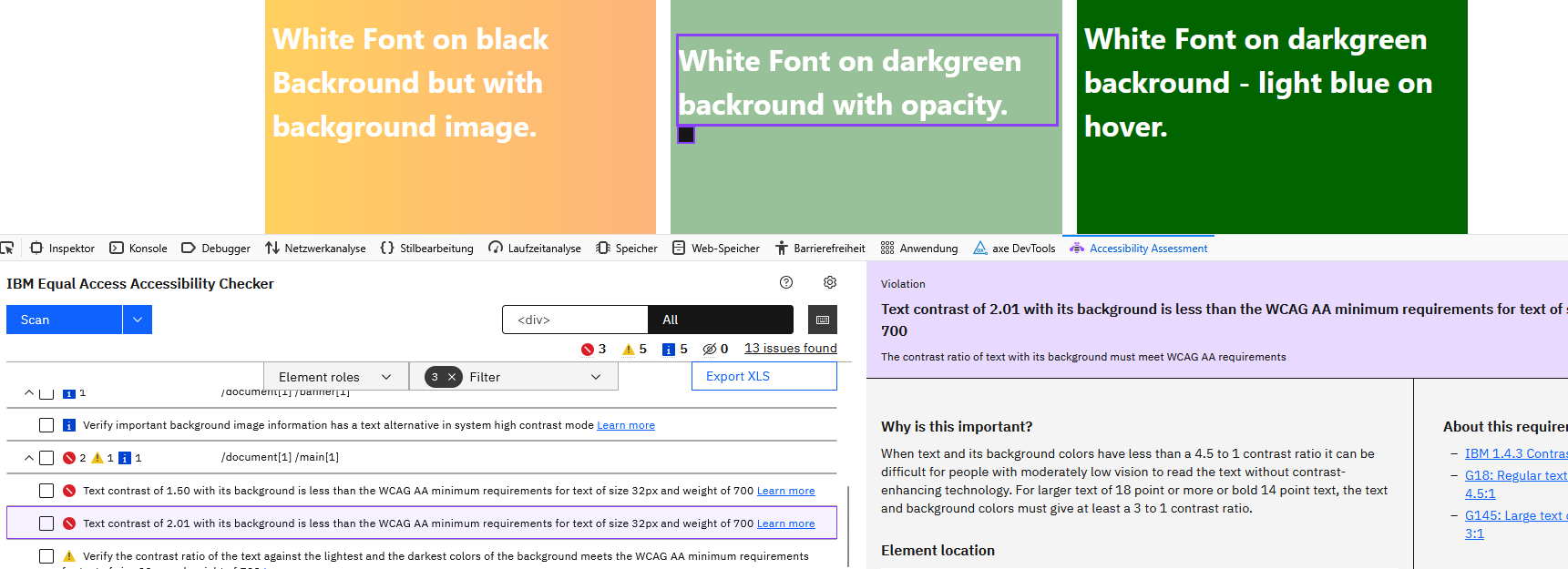 That’s why your expertise is needed, no matter what checkers tell you about the accessibility of your site. A few examples show where Tools have blind spots inchecking colour contrast. The test has been performed on Win 11 with different Browsers, other tools in other environments might give different results.
